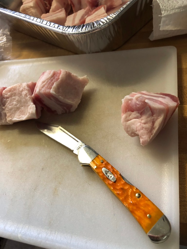 I have been taking it with me as a food prep knife for the kitchen. It has worked great cutting up peppers and fruit. I also used it to carve some pork belly and to remove some fat from chicken thighs and it cuts through it all like butter.